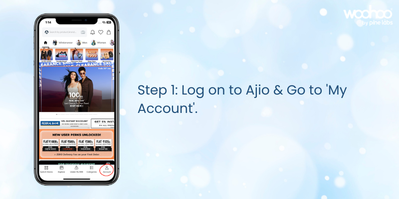 Sign in to your Ajio account on the app or website and navigate to the “My Account” section.