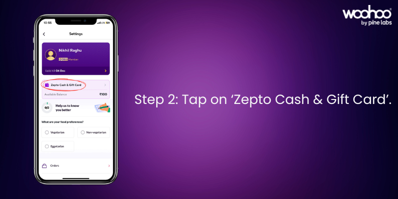 In your profile section, select Zepto Cash & Gift Card to proceed.